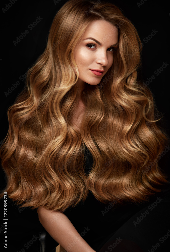 Fotografie Long Blonde Hair. Woman With Wavy Hairstyle, Beauty Face