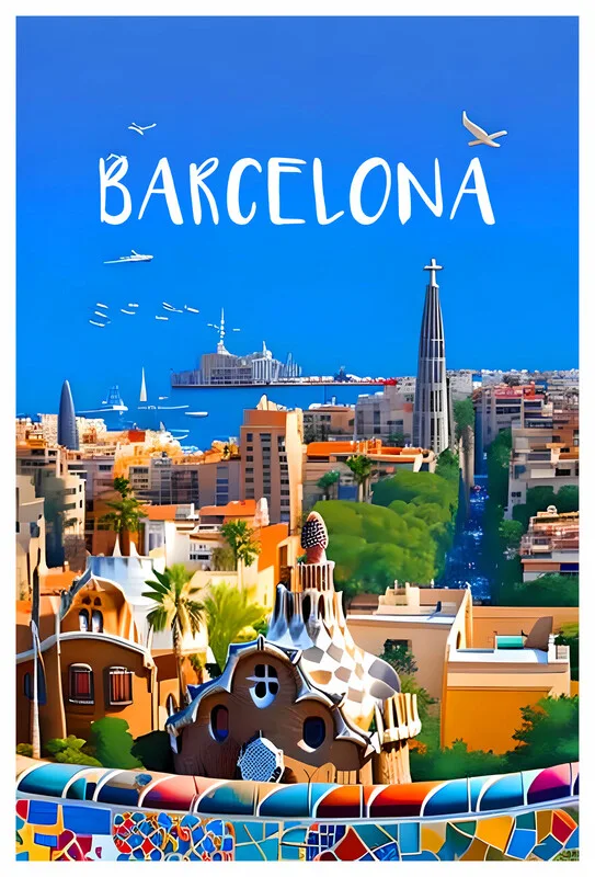Autocolant BARCELONA: In the blue of the sky and the Mediterranean sea