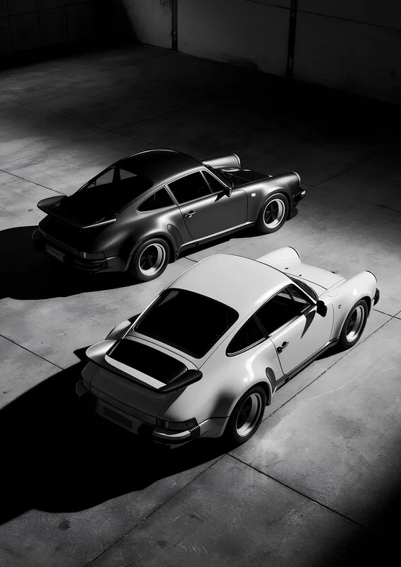 Tablou pe pânză Black and White Porsche 911s in Monochrome Contrast
