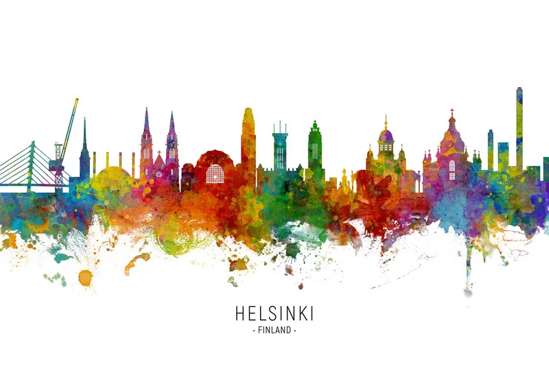 Tablou pe pânză Helsinki Finland Skyline Cityscape Painting Watercolor
