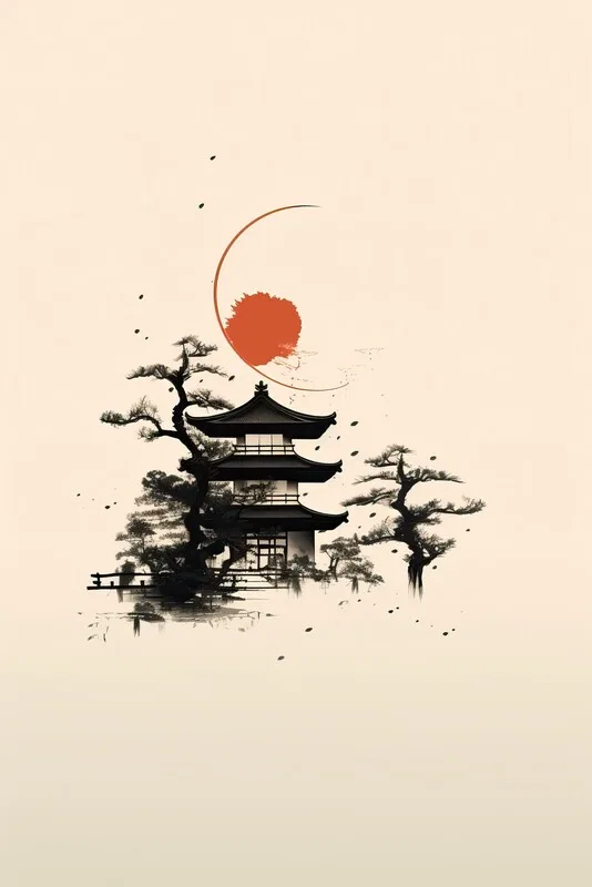 Autocolant Japanese landscape painting style