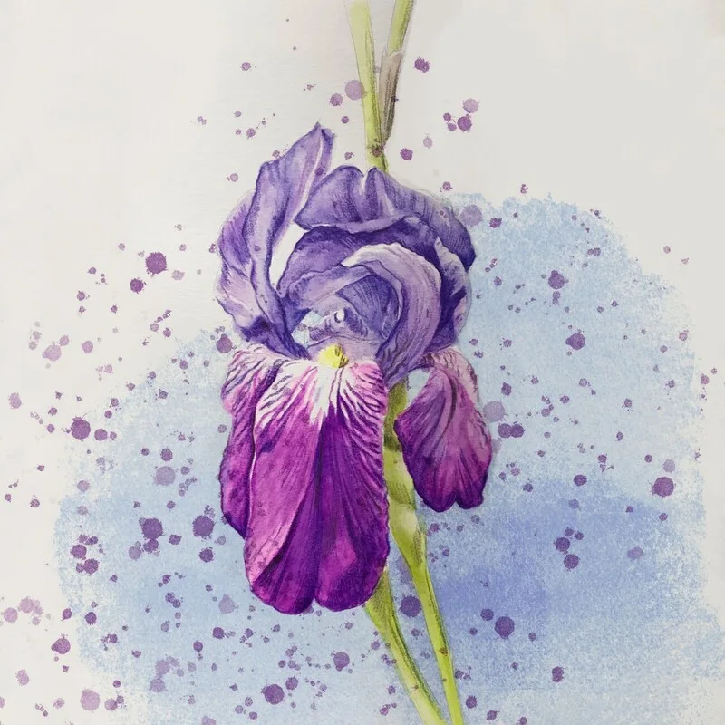 Autocolant Lirio de acuarela con salpicaduras de pintura
