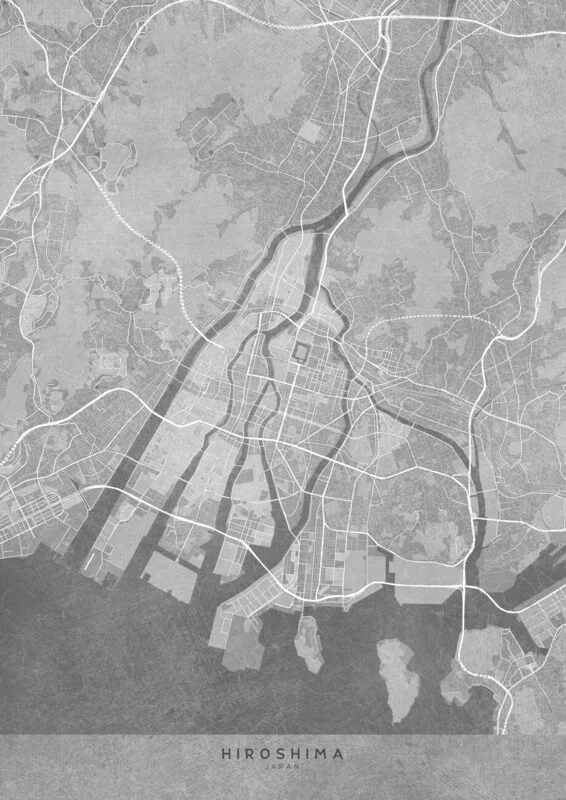 Autocolant Map of Hiroshima (Japan) in gray vintage style