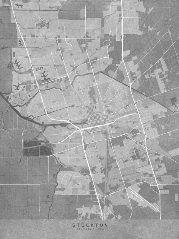 Poster Map of Stockton (CA, USA) in grey vintage style