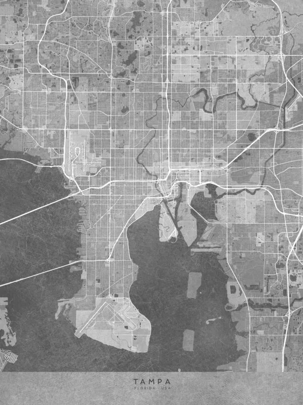 Tablou pe pânză Map of Tampa (FL) in grey vintage style