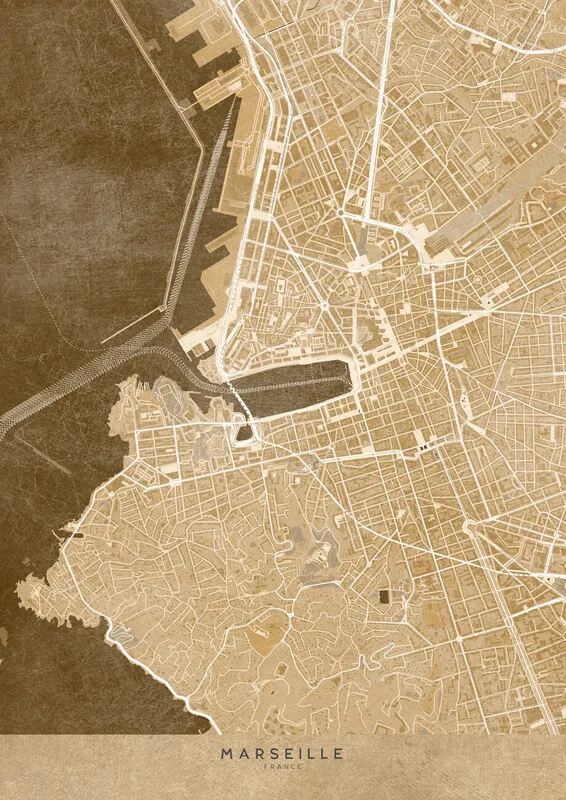 Autocolant Sepia vintage map of Marseille downtown (France)