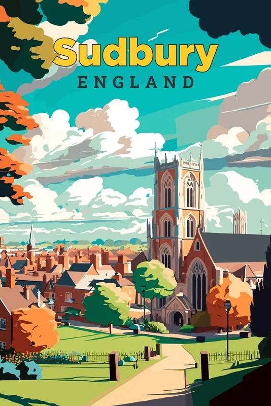 Autocolant Sudbury England Vintage Art Travel Illustration Poster