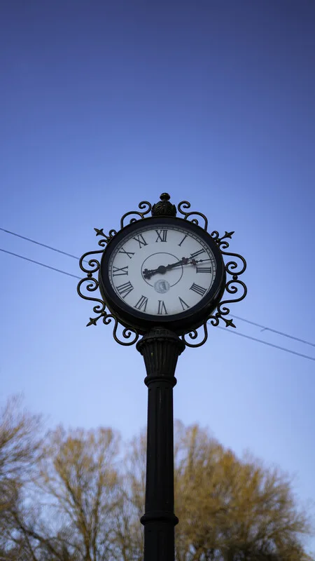 Tablou pe pânză Time on a bright blue sky background
