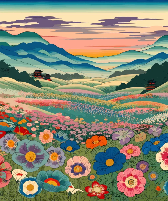 Tablou pe pânză Vintage Japanese Anime Flower Landscape