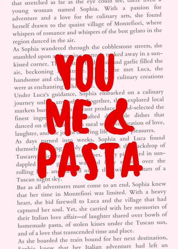 Tablou pe pânză You Me and Pasta pink and red typography