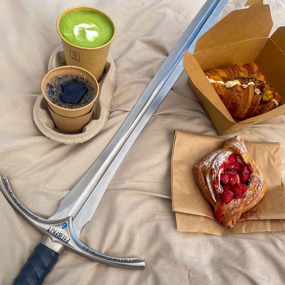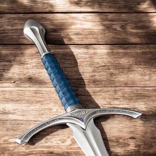 Arma iconică a lui Gandalf cel Gri și replica de lux a sabiei Glamdring din trilogia de filme Hobbitul, realizată la scara 1:1 din oțel inoxidabil.