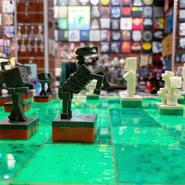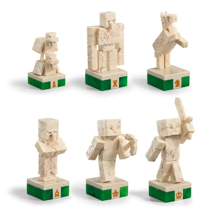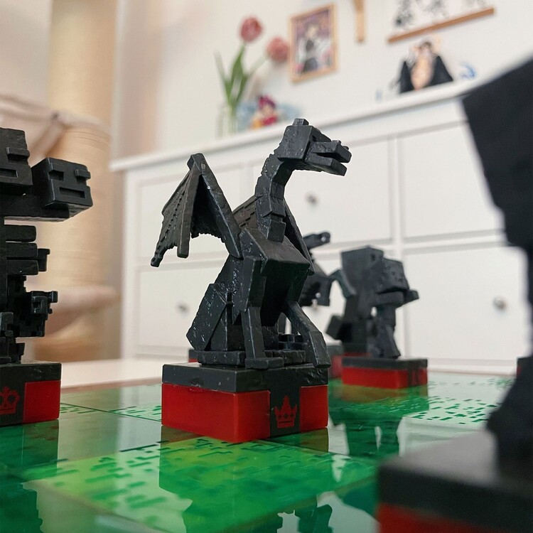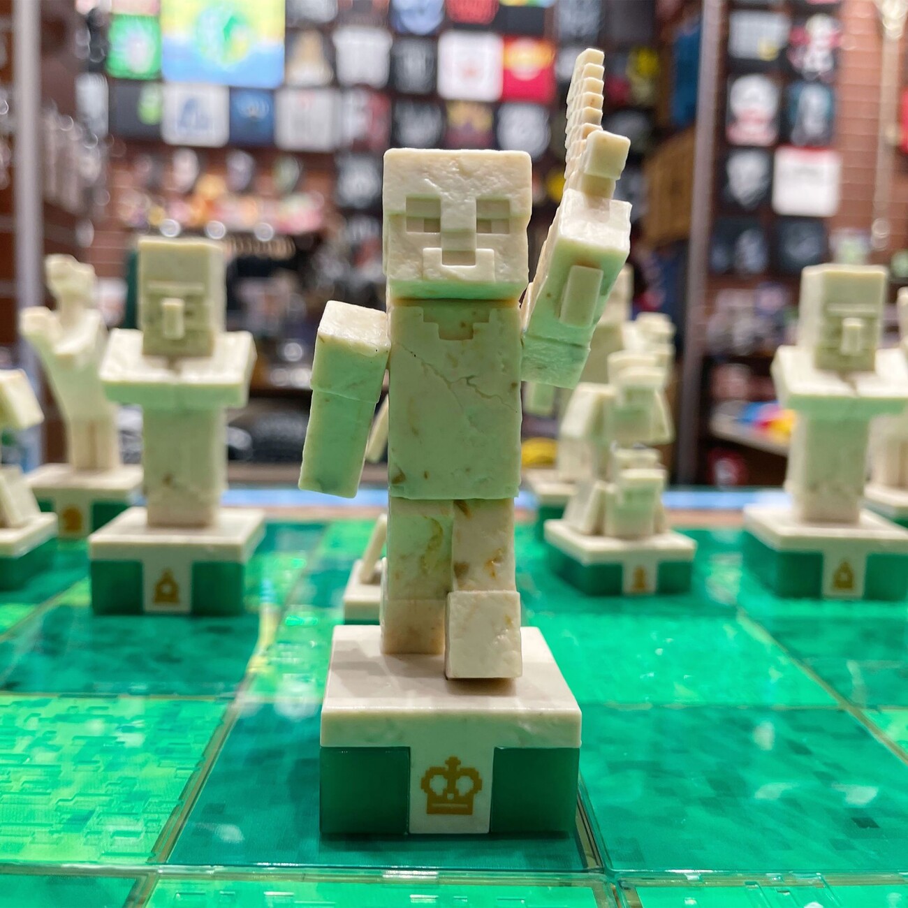 Setul de șah Minecraft de lux premiat are o tablă de șah mare de 46 cm și 32 de piese înalte de 10 cm.