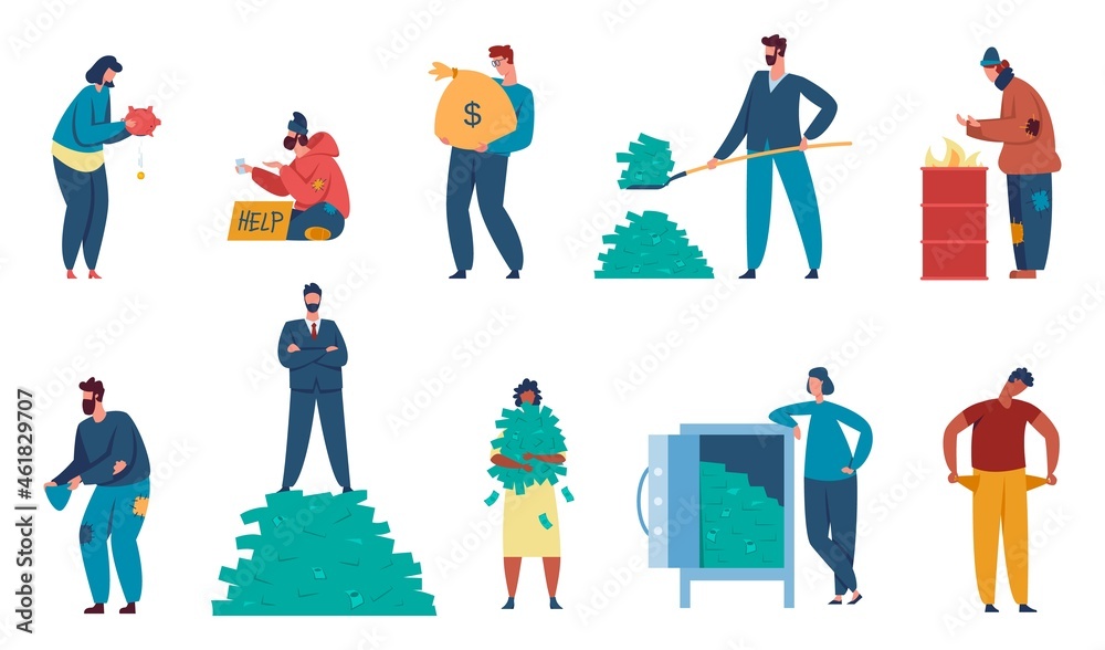 Fotografie Rich and poor people, billionaire and homeless beggar character