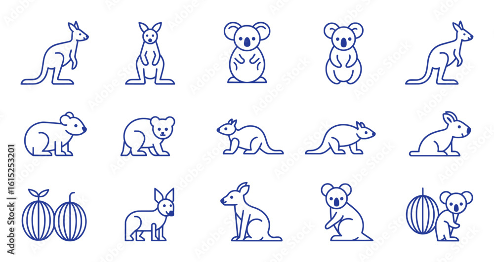 Tablou pe pânză Australian Animals And Fruits Collection kangaroo koala