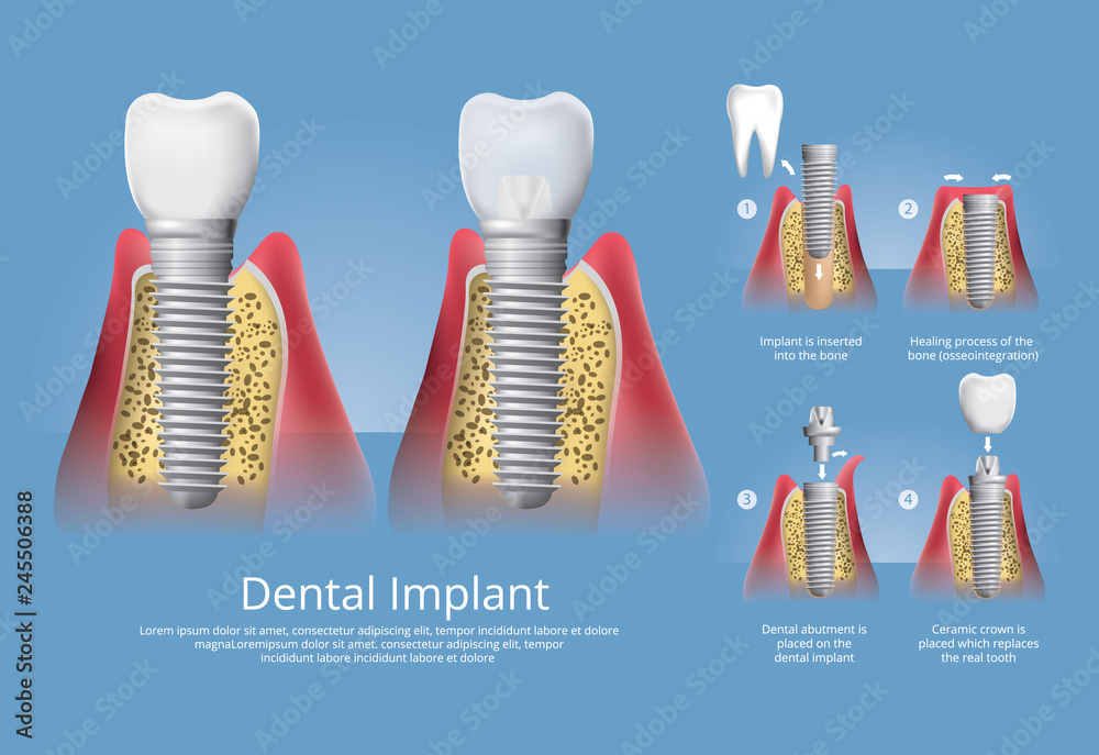 Tablou pe pânză Human teeth and Dental implant Vector Illustration