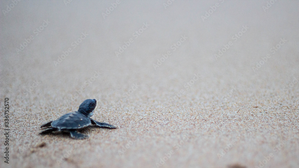 Tablou pe pânză Turtle hatchling heading to sea, baby turtle, Matara, Sri Lanka, Indian Ocean