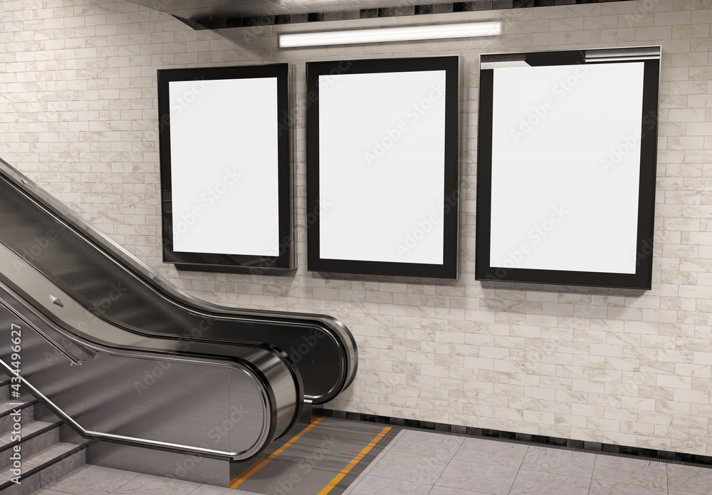 Tablou pe pânză Three vertical billboards on underground wall Mockup