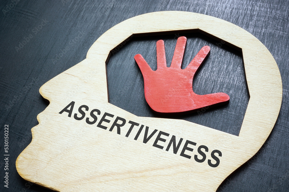 Tablou pe pânză Head shape with sign assertiveness and hand palm.