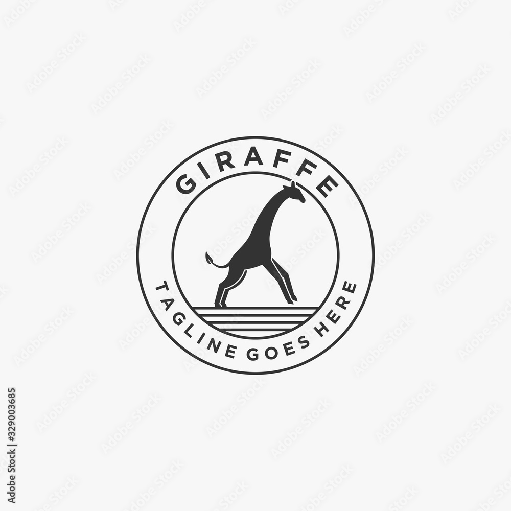 Fotografie Vector Logo Illustration Giraffe Jump Vintage Badge Style.
