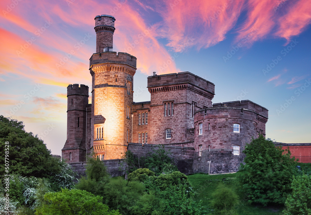Fotografie View of the castle of Inverness in Scotland at dramatic sunset